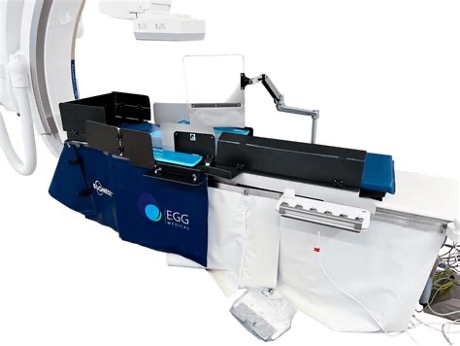 EggNest integrates radiation shielding into the procedure table itself, aiming to protect both primary and support staff from scatter radiation. While effective, it does not eliminate the need for aprons and offers no head protection.